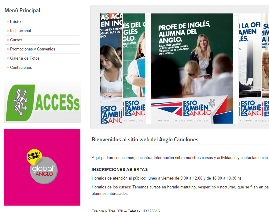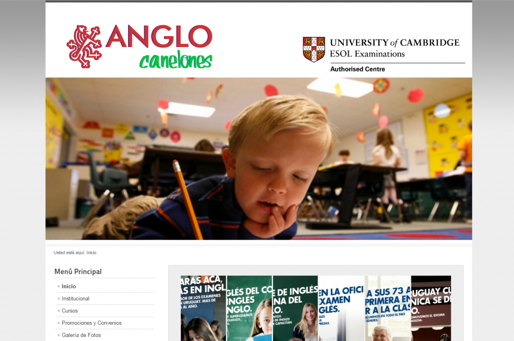 Sitio web para institución educativa privada de ingles en la ciudad de Canelones, de la cadena ANGLO. El sitio cuenta con una interfase para los alumnos la cual pueden realizar trabajos y ejercicios desde cualquier computadora.