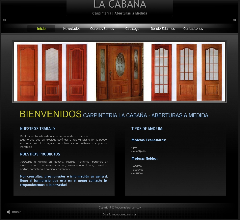 Sitio web de empresa que diseña y vende aberturas en madera, ventanas, puertas.